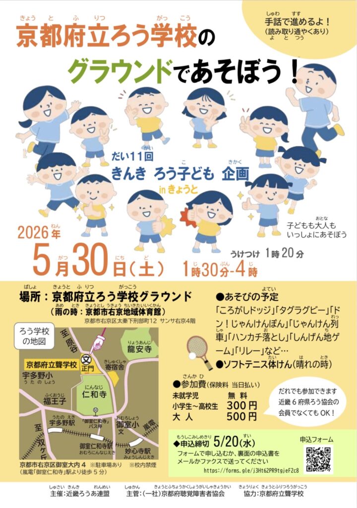 参加方法 5月20日(水)までに、以下のグーグルフォームで申し込むか、以下の申込書を京都府聴覚障害者協会までお送りください。